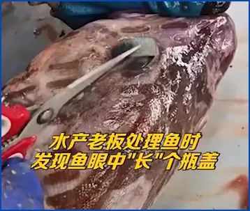 老板誤以為是魚患有白內(nèi)障,解剖開才發(fā)現(xiàn)是瓶蓋遮擋了魚的眼睛。老板說,“有的魚肚里解剖也是垃圾袋塑料袋塑料瓶之類的,吃到肚里都消化不了,感到很心酸。”