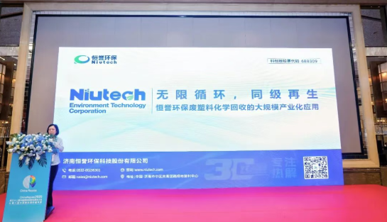 恒譽(yù)環(huán)保以“《無(wú)限循環(huán),同級(jí)再生——恒譽(yù)環(huán)保廢塑料化學(xué)回收的大規(guī)模產(chǎn)業(yè)化應(yīng)用》”為本次大會(huì)帶來(lái)主題演講,當(dāng)前我國(guó)每年產(chǎn)生6000萬(wàn)噸廢舊塑料,不適用物理回收的低值廢塑料占比46%、回收率不足10%,大多采用焚燒填埋處理,如果其中50%采用化學(xué)循環(huán)技術(shù),相當(dāng)于低成本開發(fā)了一個(gè)6000萬(wàn)噸的城市油田。針對(duì)行業(yè)的痛點(diǎn)問(wèn)題,恒譽(yù)環(huán)保通過(guò)多年的技術(shù)積累與項(xiàng)目實(shí)踐,自主研發(fā)“工業(yè)連續(xù)化智能廢塑料熱解技術(shù)及成套生產(chǎn)線”,解決了大型熱解生產(chǎn)線應(yīng)用過(guò)程中出現(xiàn)的“裂解系統(tǒng)結(jié)焦、進(jìn)出料難以動(dòng)態(tài)密封、產(chǎn)出物聚合”等多項(xiàng)世界性難題,能夠?qū)鹘y(tǒng)物理技術(shù)難以處理的混合廢塑料、海洋廢塑料、醫(yī)療廢塑料轉(zhuǎn)化為品質(zhì)穩(wěn)定的再生能源產(chǎn)品,后續(xù)通過(guò)深加工可作為生產(chǎn)新塑料的化工原料,真正實(shí)現(xiàn)了同級(jí)化、高值化利用。既減少了對(duì)化石能源的依賴,又降低了碳排放和環(huán)境污染,為全球廢塑料污染治理提供了可驗(yàn)證、可復(fù)制、可推廣的成熟方案,憑借突出的創(chuàng)新性、先進(jìn)性、示范性,該套技術(shù)裝備榮獲中國(guó)科技領(lǐng)域最高獎(jiǎng)項(xiàng)“國(guó)家科學(xué)技術(shù)進(jìn)步獎(jiǎng)”