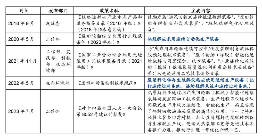熱解技術(shù)主要是利用有機(jī)廢棄物熱不穩(wěn)定性,在無(wú)氧環(huán)境中通過(guò)精準(zhǔn)的控溫加熱,讓大分子轉(zhuǎn)化為小分子的液態(tài)油、可燃?xì)?、固體產(chǎn)品等高附加值產(chǎn)物。其中代表行業(yè)創(chuàng)新與技術(shù)實(shí)力最高水平的“連續(xù)式熱解工藝”,憑借廣泛的物料適應(yīng)性、充分的資源化能力及在節(jié)能降碳方面的潛力,備受廣大專家、學(xué)者的認(rèn)可,被譽(yù)為下一代的廢物處置“重大關(guān)鍵共性”技術(shù)②,入選國(guó)家產(chǎn)業(yè)鼓勵(lì)類發(fā)展目錄,代表了未來(lái)熱解主流技術(shù)方向。